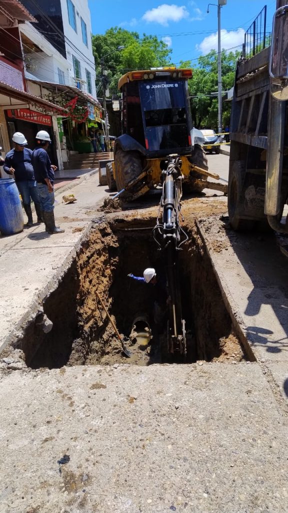 Trabajamos por el bienestar de los carmelitanos,🚧 se realiza la Reparación ⛑️👷‍♂️de la tubería de agua residuales 🔧⚠️ de la Cra. 5 #5-36,🛤️ Carmen de Apicalá, Tolima💦